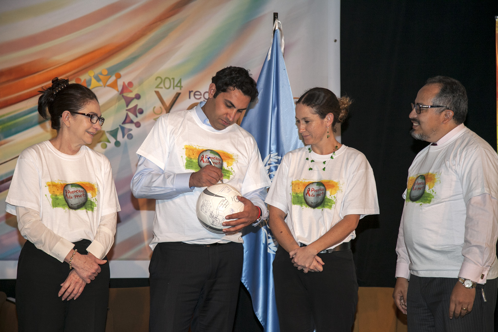 La Copa Mundial de la FIFA 2014 ofrece una plataforma única para la campaña "Protege la Meta", iniciativa de abogacía y comunicación global liderada por el Programa Conjunto de las Naciones Unidas sobre VIH y Sida (ONUSIDA) en colaboración con el Fondo de Población de las Naciones Unidas (UNFPA).